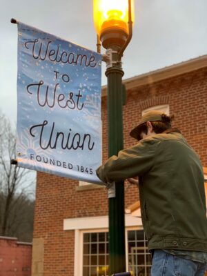 The Doddridge County 4-H Teen Leaders worked together to plan, design, and install seasonal banners along Main Street in West Union. "Doddridge County Teen Leaders wanted to make their community shine with the Welcome to West Union project," said Linsey Ferguson, Doddridge County Extension Agent in Training. "This project addresses community pride in West Union and allows 4-Hers to be involved civically in improving their town. This was a great project to undertake during COVID-19 and to remain connected to the community. The Doddridge County 4-H Teen Leaders hope that their beautification project will bring more people to Main Street and increase tourism and economic development."